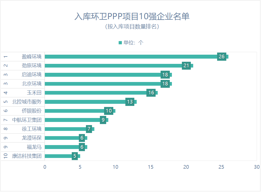 已入庫環(huán)衛(wèi)PPP項目領(lǐng)域,誰是最大贏家?入庫項目:財政部政府和社會資本合作中心PPP項目庫可以查詢到的項目,包括項目管理庫和項目儲備清單。截止目前,已入庫、且已開標的環(huán)衛(wèi)PPP項目總量為302個。按項目量計算,盈峰環(huán)境占入庫項目總量的12%在302個入庫且已開標環(huán)衛(wèi)PPP項目中,盈峰環(huán)境入庫項目數(shù)量...