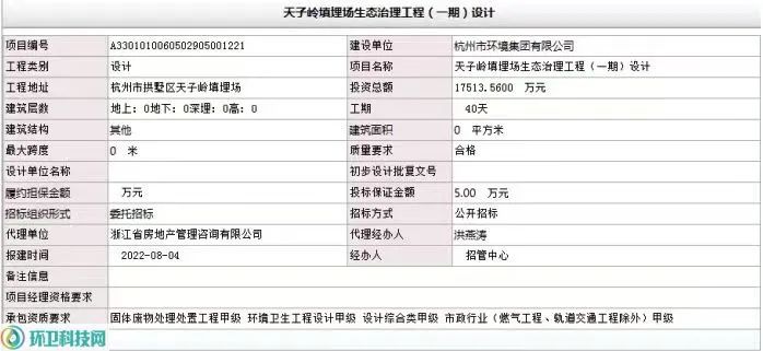 來源 | 環(huán)衛(wèi)科技網(wǎng)作者 | ivy筆者昨日注意到,杭州市人民政府網(wǎng)站8月5日公布了“天子嶺填埋場生態(tài)治理工程(一期)設(shè)計招標核準登記”,這意味著坊間流傳已久的杭州天子嶺生活垃圾填埋場生態(tài)治理工程即將進入實操階段。從這份核準登記文件看,天子嶺填埋場生態(tài)治理工程建設(shè)單位為杭州市環(huán)境集團有限公司,投資總...