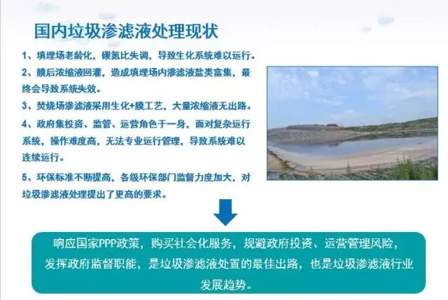 在2017年5月中國環(huán)聯(lián)第一屆固廢技術論壇上,大連廣泰源環(huán)??萍加邢薰緦ξ覈鴿B濾液處理現(xiàn)狀進行了總結,并對垃圾滲濾液的處置提出了響應國家PPP政策,購買社會化服務,規(guī)避政府投資、運營管理風險,發(fā)揮政府監(jiān)督職能,是垃圾滲濾液處置的行業(yè)發(fā)展趨勢。