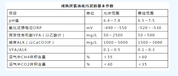 培養(yǎng)結束后,成熟的污泥呈深灰到黑色,有焦油氣味但無硫化氫氣味,pH值在7.0~7.5之間,污泥容易脫水和干化。對進水的處理效果高,產(chǎn)氣量大,沼氣中甲烷成分高。培養(yǎng)成熟的厭氧消化污泥的基本指標和參數(shù)見下表。
