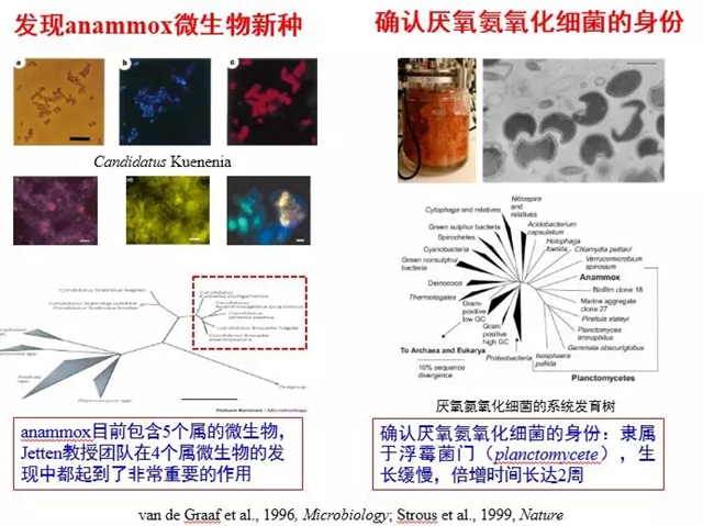 Anammox現(xiàn)象被發(fā)現(xiàn)之后,Kuenen教授的一位主要助手Mike Jetten博士專注于Anammox的微生物學(xué)研究,并在加盟荷蘭奈梅亨大學(xué)微生物系之后,組織團隊展開了長期的基礎(chǔ)研究工作,發(fā)現(xiàn)和培養(yǎng)了新的參與氮、硫和碳轉(zhuǎn)化的微生物,采用分子生物學(xué)、結(jié)構(gòu)化學(xué)和宏基因組學(xué)從基因、細(xì)胞、個體和生態(tài)系統(tǒng)水平揭示相關(guān)微生物的反應(yīng)機理。