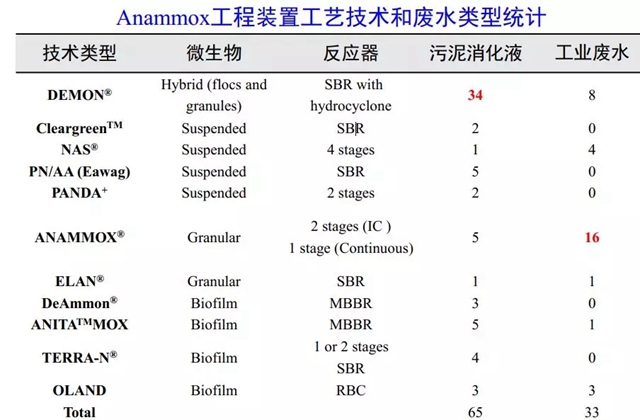 Anammox的國際工程應(yīng)用