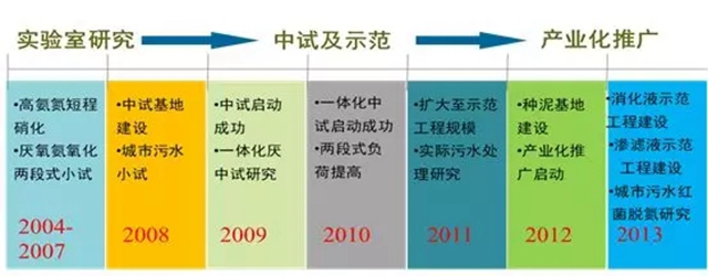 上世紀(jì)90年代,鄭平教授將荷蘭的一些Anammox菌種帶回國內(nèi)開始了長期的研究,主要做了三方面的工作:一是Anammox菌種的研究;二是基于Anammox的菌種的工藝研究;三是基于Anammox的菌種的裝備研究。其主要目標(biāo)是取得更高的容積去污能力、更低的運行成本和更穩(wěn)定的工藝性能。