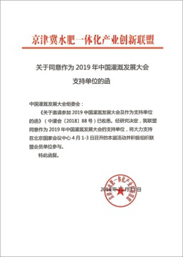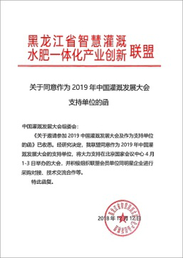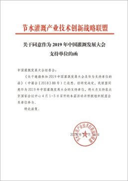 在2019年新年開篇之時(shí),來自全國各節(jié)水灌溉聯(lián)盟及協(xié)會(huì)對中國灌溉發(fā)展大會(huì)的支持回函如雨后春筍般紛紛到達(dá),本周之內(nèi),中國塑料加工工業(yè)協(xié)會(huì)塑料節(jié)水器材專業(yè)委員會(huì)、中國生態(tài)農(nóng)業(yè)產(chǎn)業(yè)技術(shù)創(chuàng)新戰(zhàn)略聯(lián)盟、節(jié)水灌溉產(chǎn)業(yè)技術(shù)創(chuàng)新戰(zhàn)略聯(lián)盟、新疆兵團(tuán)節(jié)水灌溉產(chǎn)業(yè)技術(shù)創(chuàng)新戰(zhàn)略聯(lián)盟、京津冀水肥一體化產(chǎn)業(yè)創(chuàng)新聯(lián)盟、黑龍江省智慧灌溉水肥一體化產(chǎn)業(yè)創(chuàng)新聯(lián)盟紛紛致函組委會(huì),表示將大力支持在北京國家會(huì)議中心4月1-3日召開的大會(huì)并積極組織相關(guān)會(huì)員單位參與同期活動(dòng)。