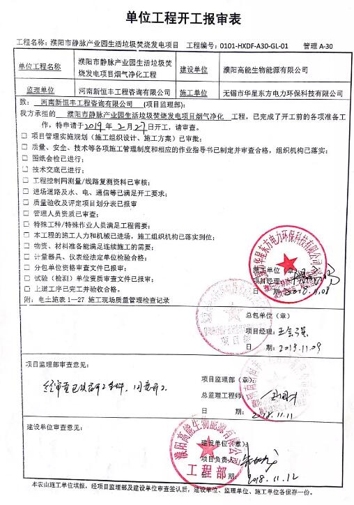 原標(biāo)題:河南濮陽2x500t/d生活垃圾焚燒發(fā)電煙氣凈化工程開工建設(shè)