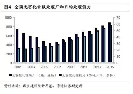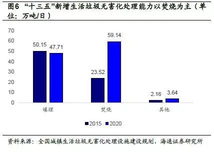 按照垃圾焚燒規(guī)劃新增處理能力對市場空間進(jìn)行測算,“十三五”期間垃圾焚燒處理費(fèi)市場空間總計近400億元,焚燒發(fā)電市場空間約1100億元,兩者合計運(yùn)營收入約1500億元;此外,新增處理能力所需的建設(shè)投資總計近1500億元,垃圾焚燒市場空間巨大。