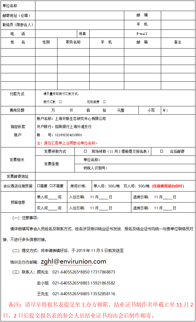 (三)請于開班前3天將報名表發(fā)至中國戰(zhàn)略性新興產(chǎn)業(yè)環(huán)保聯(lián)盟指定報名郵箱或傳真至021-64055710。