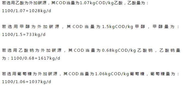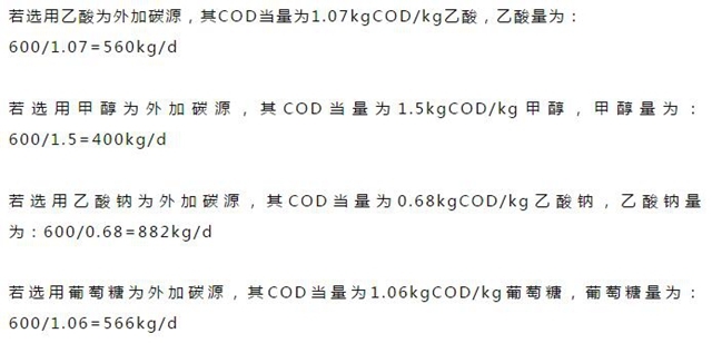 1、外部碳源投加量簡(jiǎn)易計(jì)算方法