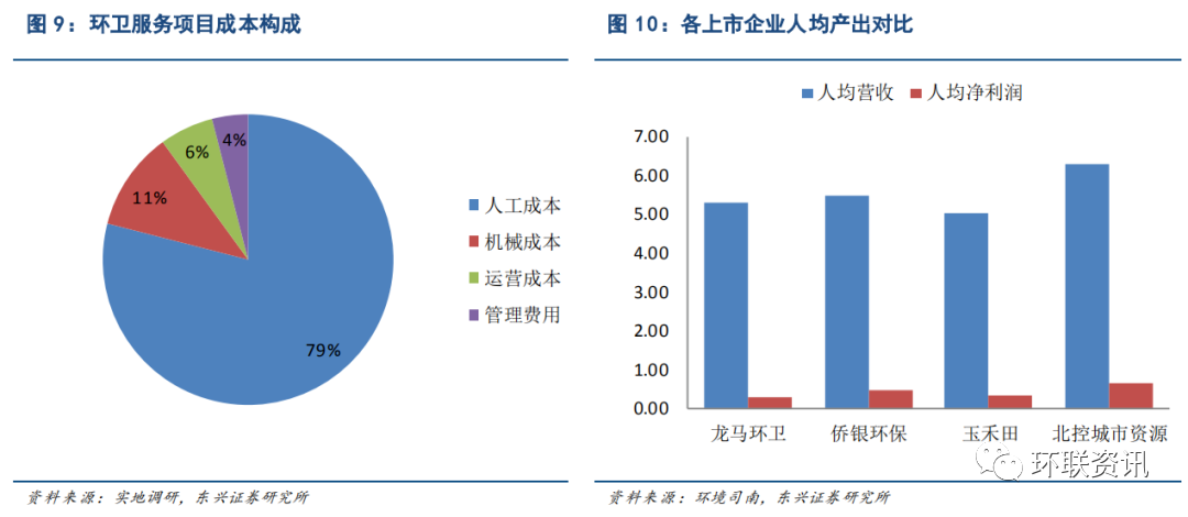 未來行業(yè)的集中度提升的天花板,則取決于遠期環(huán)衛(wèi)龍頭企業(yè)能否通過精細化管理在人均產出上與中小企業(yè)拉開差距,能否在大量人力資本的管理中取得顯著的規(guī)模經濟性。