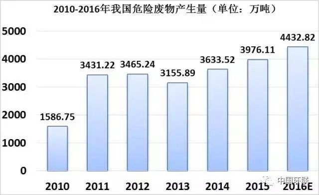 2016年,危廢真正實現(xiàn)集中處置的比例估計不到35%;2017年,危廢產(chǎn)生量預(yù)計超過6000萬噸,危廢處理市場挑戰(zhàn)和機(jī)遇并存。
