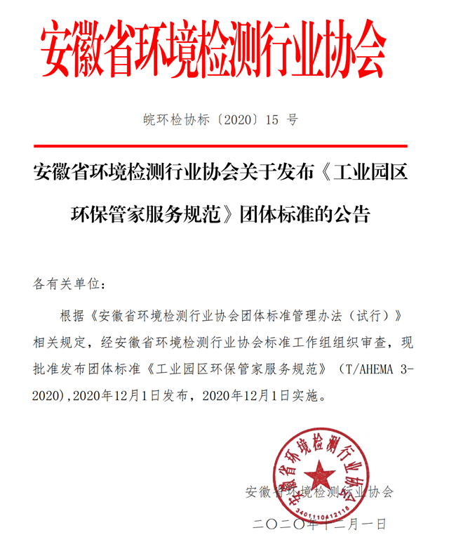 分類(lèi):產(chǎn)業(yè)市場(chǎng) > 標(biāo)準(zhǔn)規(guī)范 發(fā)布時(shí)間:2020年12月7日 9:16 作者: 文章來(lái)源:安徽省環(huán)境檢測(cè)行業(yè)協(xié)會(huì)