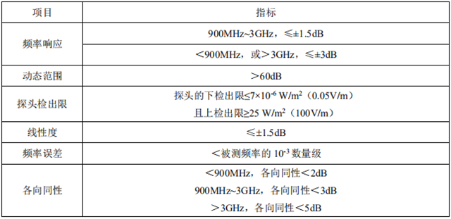 表 1 選頻式電磁輻射監(jiān)測(cè)儀電性能基本要求