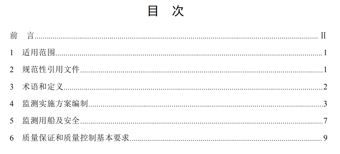 本標(biāo)準(zhǔn)作為修訂后標(biāo)準(zhǔn)的第一部分,針對(duì)監(jiān)測(cè)實(shí)施方案編制、監(jiān)測(cè)用船及安全和質(zhì)量保證和質(zhì)量控制基本要求,主要修訂以下幾方面內(nèi)容: