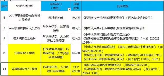 43 | 環(huán)境影響評(píng)價(jià)工程師 | 環(huán)境保護(hù)部、人力資源社會(huì)保障部 | 水平評(píng)價(jià)類 |