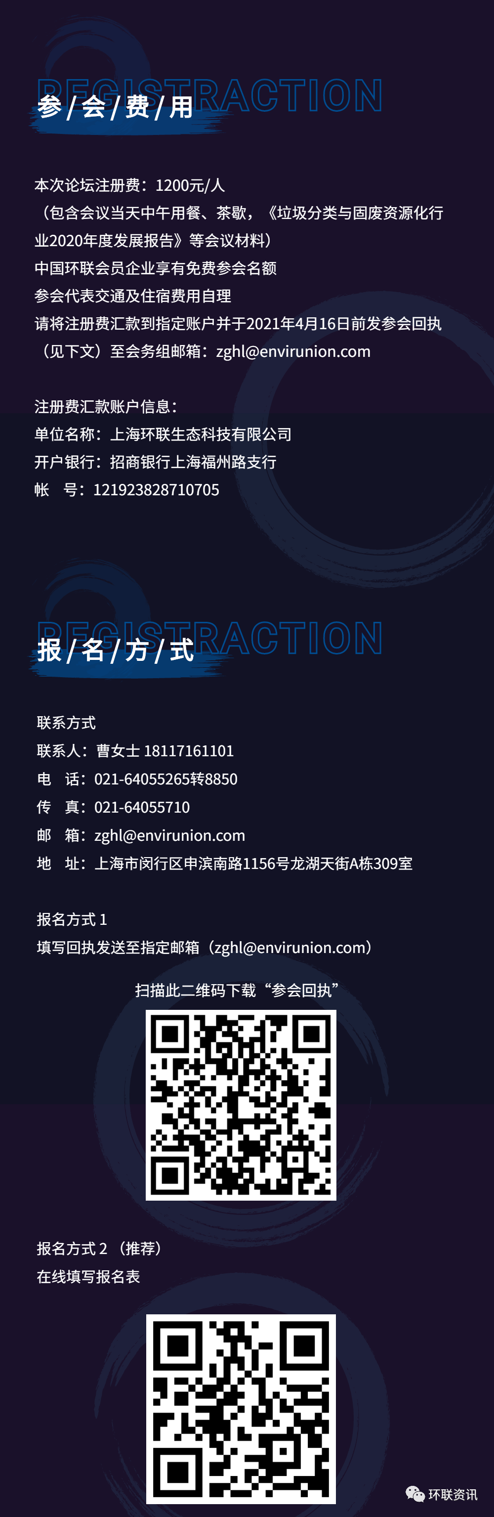 中國環(huán)聯將于2021年4月19日在上海舉辦第八屆固廢資源化高峰論壇,論壇主題“垃圾資源化,助力碳中和”。將邀請生活垃圾分類、廚余垃圾處理、垃圾焚燒發(fā)電、智慧環(huán)衛(wèi)管理、低碳技術應用等領域卓越企業(yè)代表,高等院校資深專家及政府官員參加,解讀最新政策趨勢、分析市場特點及行業(yè)技術焦點、分享創(chuàng)新業(yè)務模式與經營理念,為固廢資源化貢獻力量。期待您的參與,因為有您,論壇更加精彩!
