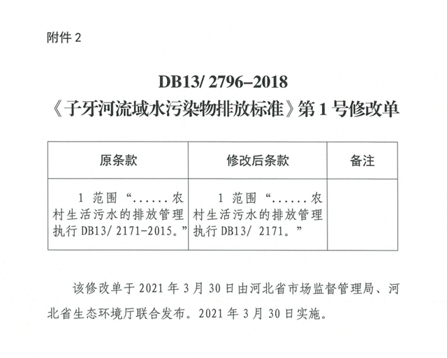2.DB13/ 2796-2018《子牙河流域水污染物排放標(biāo)準(zhǔn)》第1號修改單