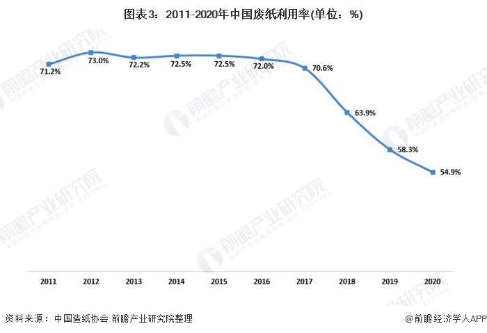 隨著我國(guó)紙類消費(fèi)的逐年增加,中國(guó)對(duì)廢紙紙漿的需求也隨之?dāng)U大,導(dǎo)致廢紙供不應(yīng)求。由于進(jìn)口廢紙?jiān)趦r(jià)格和得漿率上的優(yōu)勢(shì),中國(guó)較大規(guī)模的造紙企業(yè)都傾向于購(gòu)買幾口廢紙,從而抑制了中國(guó)廢紙回收相關(guān)企業(yè)的發(fā)展。導(dǎo)致目前我國(guó)廢紙回收水平較低。