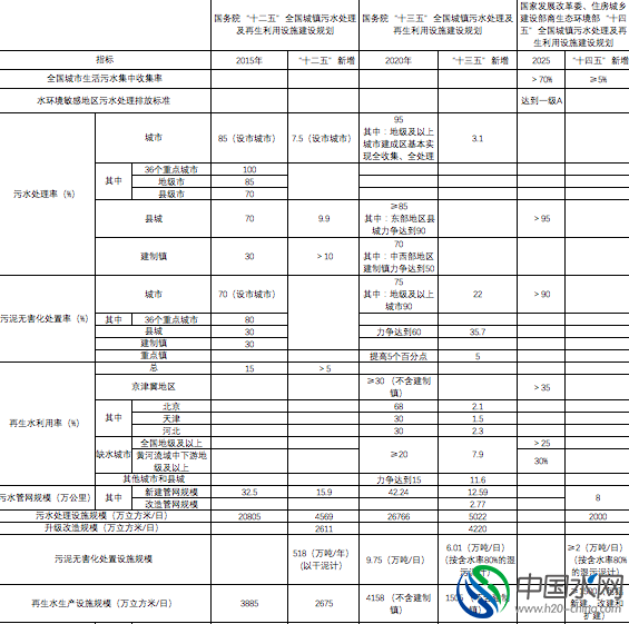 對比國務(wù)院辦公廳發(fā)布的《“十二五”全國城鎮(zhèn)污水處理及再生利用設(shè)施建設(shè)規(guī)劃》(簡稱《十二五規(guī)劃》)及《“十三五”全國城鎮(zhèn)污水處理及再生利用設(shè)施建設(shè)規(guī)劃》(簡稱《十三五規(guī)劃》發(fā)現(xiàn):