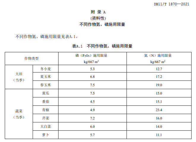 8.2 固體糞肥施用以磷為限量依據(jù),氮素不足時(shí)補(bǔ)施氮肥;液體糞肥施用以氮為限量依據(jù),磷素不足時(shí)補(bǔ)施磷肥。氮、磷施用限量見附錄 A。