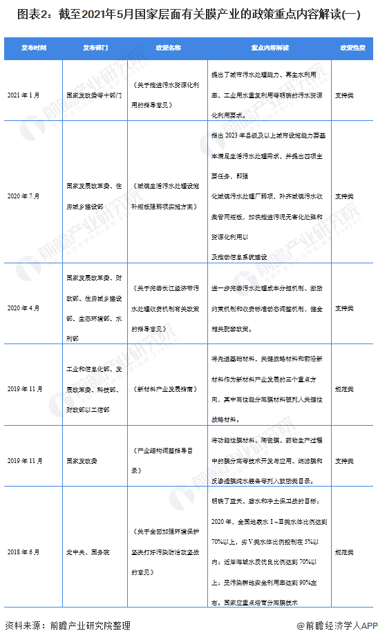 圖表2:截至2021年5月國家層面有關膜產(chǎn)業(yè)的政策重點內(nèi)容解讀(一)