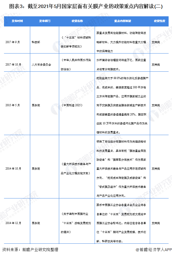 圖表3:截至2021年5月國家層面有關膜產(chǎn)業(yè)的政策重點內(nèi)容解讀(二)