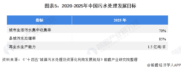 圖表5:2020-2025年中國污水處理發(fā)展目標
