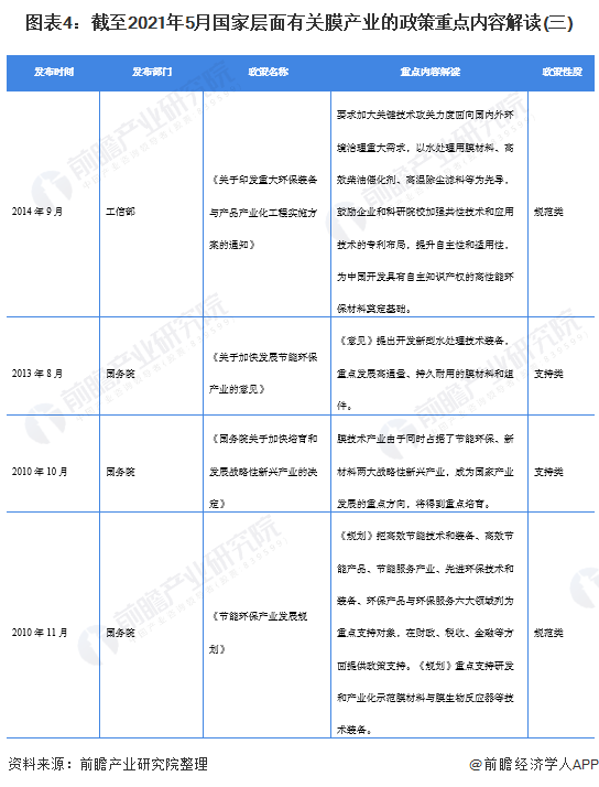 圖表4:截至2021年5月國家層面有關膜產(chǎn)業(yè)的政策重點內(nèi)容解讀(三)