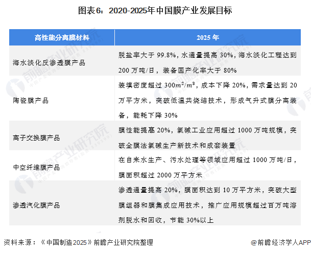 圖表6:2020-2025年中國膜產(chǎn)業(yè)發(fā)展目標