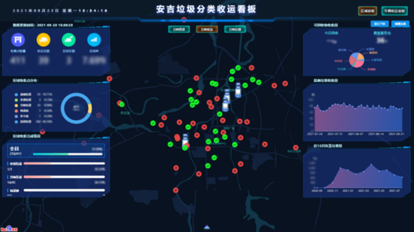 以垃圾分類為視角,安吉借助信息化手段對環(huán)衛(wèi)保潔、易腐垃圾、可回收物、有害垃圾、其他垃圾、特殊垃圾等各項運行數(shù)據(jù)進行精細梳理和高效整合,消除信息孤島、打造數(shù)據(jù)互聯(lián)互通,彌補了針對垃圾分類信息化綜合監(jiān)管的缺位。通過搭建便捷高效的垃圾分類智慧監(jiān)管平臺,監(jiān)管人員可以快速把握垃圾分類工作全鏈條關(guān)鍵數(shù)據(jù),實現(xiàn)科學(xué)研判,提升監(jiān)管、應(yīng)急、考核、服務(wù)、決策效率與能力,讓垃圾分類管理工作更高效、更精準、更智慧。