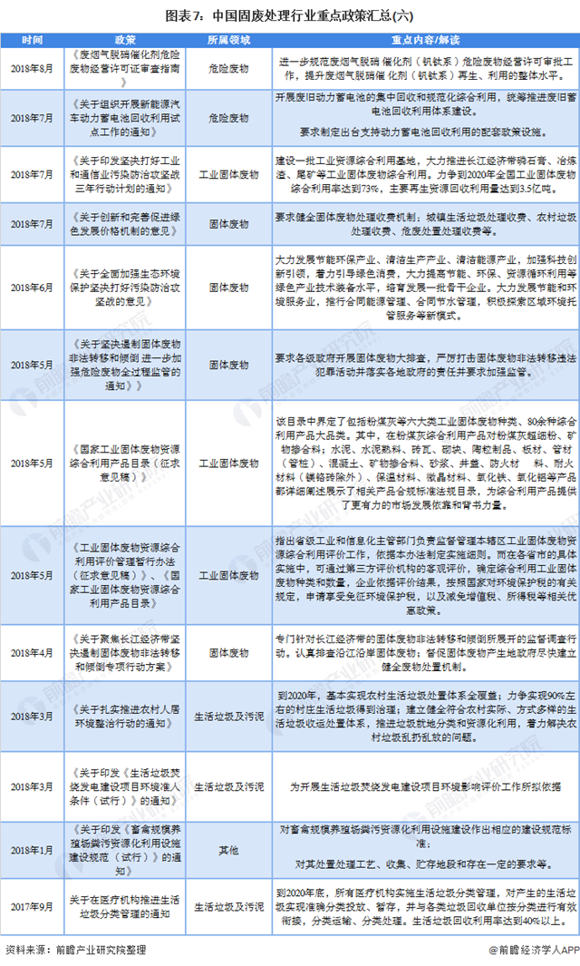 我國固廢行業(yè)相關(guān)的重點政策針對方面主要可分為綜合固體廢物、危險廢物、工業(yè)固體廢物、廢棄電器電子產(chǎn)品、生活垃圾及污泥及其他,在該基礎(chǔ)上,針對不同方面出臺了數(shù)量相當(dāng)?shù)恼咭砸?guī)定和支持固廢處理及其相關(guān)產(chǎn)業(yè)(例如,垃圾焚燒發(fā)電等)的產(chǎn)業(yè)化發(fā)展。