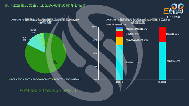 (4)2020年餐廚/廚余垃圾的非PPP特許經(jīng)營項目存在中標(biāo)的“小高峰”;近三年投運項目從運營模式看,以BOT模式為主;從技術(shù)工藝看,主要以厭氧消化為主;從社會資本方看:民企(C/D方陣)在投運市場不斷發(fā)力。