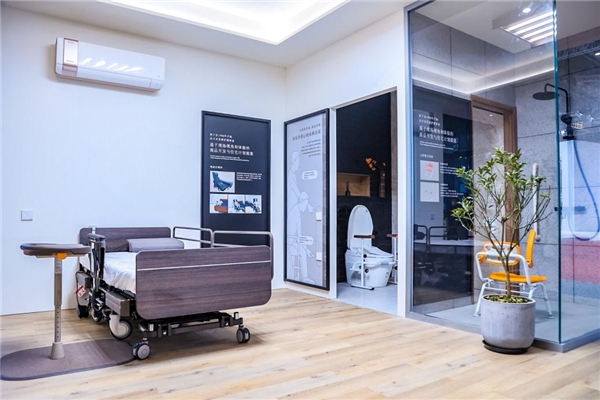 衛(wèi)浴空間內(nèi),健康一體機(jī)可以通過收集分析如廁時(shí)的身體數(shù)據(jù),了解自身狀態(tài),將“健康防線”前移,升級版產(chǎn)品逐步嵌入舒適元素。臥室內(nèi),電動(dòng)分離床可隨時(shí)將睡床的一部分獨(dú)立分出來,變成一臺(tái)全自動(dòng)電動(dòng)移動(dòng)椅,最大限度降低老年人生活障礙及護(hù)理人員負(fù)擔(dān)……看似普通的養(yǎng)老空間內(nèi),科技讓養(yǎng)老生活更有溫度。