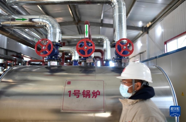 11月25日,大唐青海能源開發(fā)有限公司一名工人在青海省海南藏族自治州興??h民族高級(jí)中學(xué)鍋爐房?jī)?nèi)巡檢。新華社記者 駱曉飛 攝