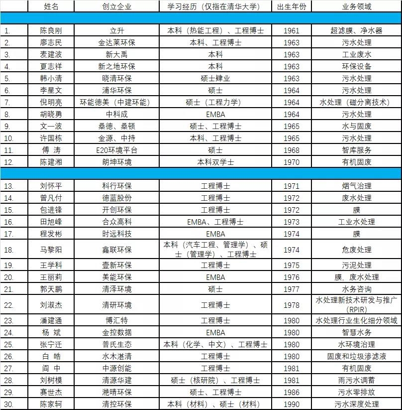 具體到創(chuàng)業(yè)者群體,從環(huán)境產(chǎn)業(yè)誕生之初,一直到現(xiàn)在,群星閃耀中有不少畢業(yè)于清華大學(xué)的佼佼者。