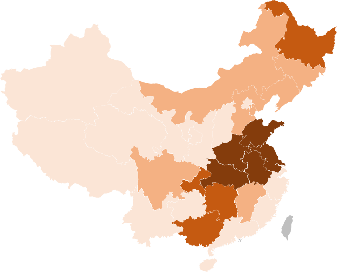 從區(qū)域分布來看,秸稈來源主要分布在糧食生產(chǎn)地,遼寧、吉林、黑龍江、內(nèi)蒙古、河北、河南、湖北、湖南、山東、江蘇、安徽、江西、四川等13個(gè)糧食主產(chǎn)?。▍^(qū))秸稈理論資源量占全國秸稈理論資源量的70%以上。從區(qū)域分布來看,秸稈來源主要分布在糧食生產(chǎn)地,遼寧、吉林、黑龍江、內(nèi)