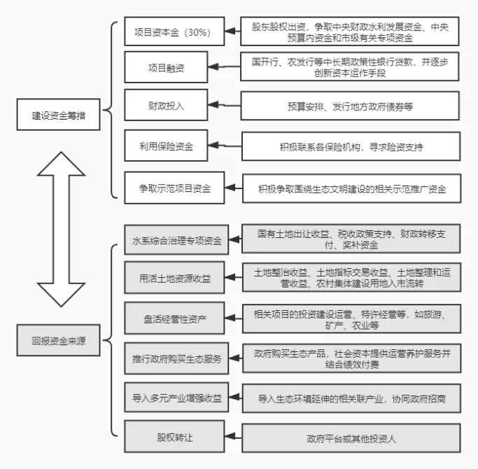 圖3 薊運(yùn)河EOD項(xiàng)目建設(shè)資金籌措與回報(bào)資金來源