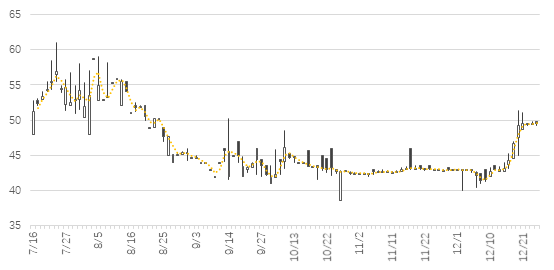 價格方面,截至12月24日,全國碳市場掛牌協(xié)議交易平均價格約45.9元/噸,最高價61.07元/噸,最低價38.5元/噸,絕大部分在40到60區(qū)間內(nèi)波動,總體呈現(xiàn)波動降低的趨勢,12月以來隨著履約期臨近,碳價開始逐步升高,從12月初的約42元/噸回升到50元/噸左右,12月21日大宗交易也出現(xiàn)了46.3元/噸的較高交易價格。氣候投融資試點工作將著力探索支持全國碳市場長期平穩(wěn)運行的相應手段,推動碳市場提供更穩(wěn)定的長期價格信號,促進減排活動的實施效率,同時也挖掘碳配額的價值,為企業(yè)減排活動提供更全面的支持。