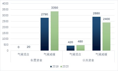 圖 3 2019-2020年全球公共與私營在氣候減緩與適應的投資情況(單位:億美元)