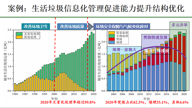 劉建國提到,我國城市垃圾治理從過去簡單處理來改善環(huán)境衛(wèi)生到改善環(huán)境質(zhì)量再到環(huán)境安全保障與氣候變化應(yīng)對的新階段。2020年無害化處理率超過99.8%,但這不是說相當(dāng)于100分考了99.8分,而是100個人當(dāng)中有99.8個人超過了60分,其實(shí)還有很大進(jìn)步空間。2020年,城市生活垃圾焚燒占比62.3%,填埋33.1%,其他4.6%。垃圾無害化處理經(jīng)過了填埋一家獨(dú)大、焚燒快速發(fā)展到多元并舉的過程,整個處理系統(tǒng)的結(jié)構(gòu)在不斷優(yōu)化。