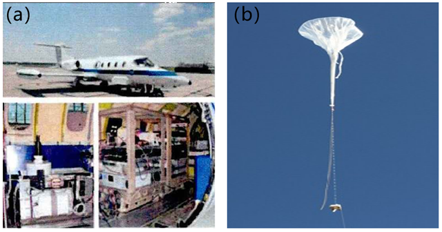 圖4.(a)機(jī)載DIAL探測(cè)(b)球載TDLAS探測(cè)