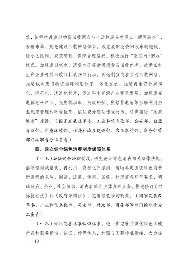 國家發(fā)展改革委等部門關(guān)于印發(fā)《促進(jìn)綠色消費(fèi)實(shí)施方案》的通知