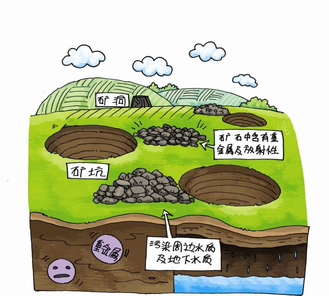 礦山固體廢物是在采礦和選礦過程中產(chǎn)生的沒有工業(yè)價值的礦物,例如尾礦、廢石以及煤矸石等。這些廢物通常都含有重金屬等污染物。另外,還會有選礦過程加入的一些表面活性劑、酸或者堿等危害環(huán)境的成分。有些礦山固體廢物還有一定的放射性。它們通常會堆在礦場附近,既侵占良田,又在長期的風化及雨水的淋洗下,使周邊的地下水質變壞,特別是酸性水或含有重金屬的污水,污染周邊環(huán)境。