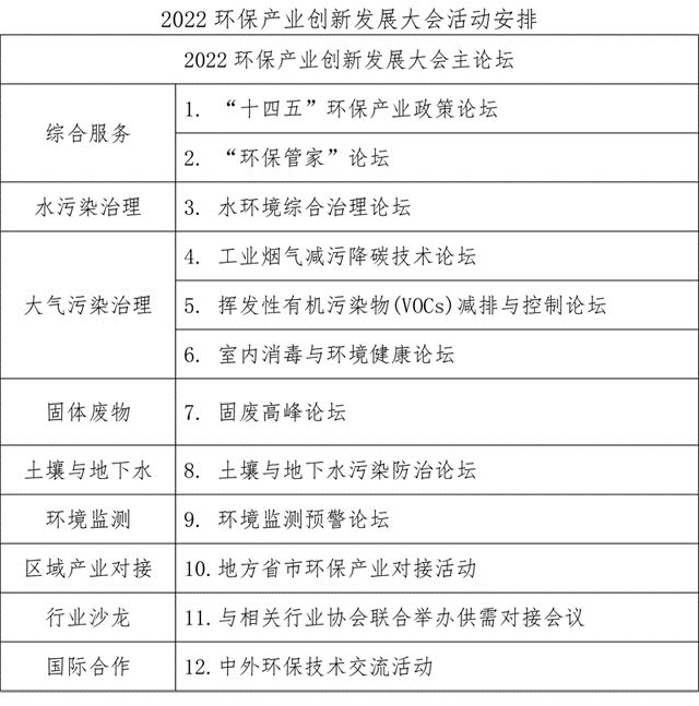 同時(shí),展會(huì)將召開(kāi)2022 環(huán)保產(chǎn)業(yè)創(chuàng)新發(fā)展大會(huì),大會(huì)將圍繞“十四五”生態(tài)環(huán)境保護(hù)重點(diǎn)工作和環(huán)保產(chǎn)業(yè)熱點(diǎn)趨勢(shì)展開(kāi),采取展覽會(huì)議聯(lián)動(dòng)、線上線下結(jié)合的形式,通過(guò)環(huán)境綜合服務(wù)、水、氣、固、土、監(jiān)測(cè)、供需對(duì)接、國(guó)際合作等板塊共計(jì)30余個(gè)平行分論壇的交流,共同探討產(chǎn)業(yè)發(fā)展新機(jī)遇和新思路。