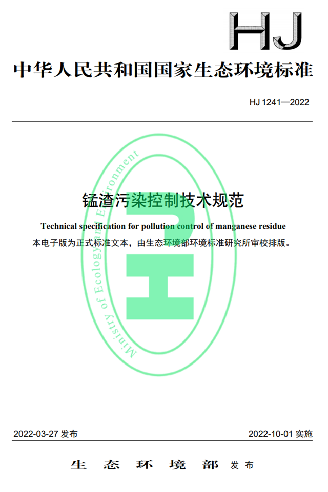 標(biāo)準(zhǔn)名稱、編號(hào)如下:《錳渣污染控制技術(shù)規(guī)范》(HJ 1241-2022)