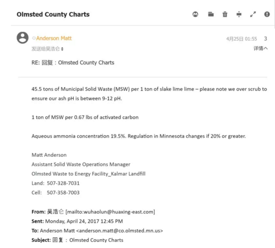 參觀的同時,我們交流了一下大致的排放指標,由于時間久了具體排放限值數(shù)據(jù)記不清了,但印象中其排放指標一般,甚至高于國內(nèi)現(xiàn)行的18485標準?;貒笪也殚喠讼嚓P(guān)資料,發(fā)現(xiàn)明尼阿波利斯的地方標準有所提高。其依據(jù)是我查閱了一個Olmsted焚燒廠3號線的環(huán)評報告,并注意到Olmsted的1.2號線的排放標準明顯寬于3號線的排放標準,有興趣的同志可以往上翻幾頁看看Olmsted廠的排放標準。