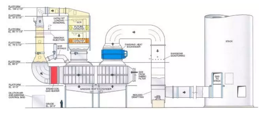 該廠主要燃料為城市生活垃圾,輔助燃料為天然氣。95MW的裝機容量,可供應(yīng)55000個家庭。單臺鍋爐供熱能力為:284,400 lb/h。我們關(guān)注的煙氣區(qū)域分為2個部分,SDA+SCR。