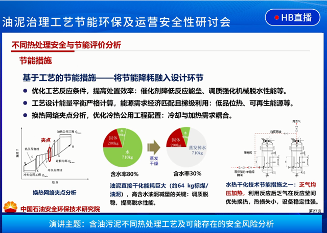 在《含油污泥不同熱處理工藝及可能存在的安全風(fēng)險分析》的主題演講中,劉光全詳細介紹了中國石油集團安全環(huán)保技術(shù)研究院開發(fā)的熱處理工藝,包括含油固廢化學(xué)熱洗、超熱蒸汽噴射干化、熱脫附、水熱干化等,并對幾種技術(shù)的特點及安全性進行了闡述與分析。