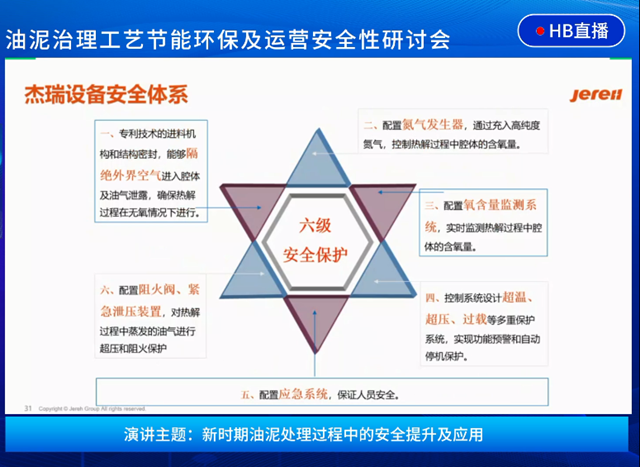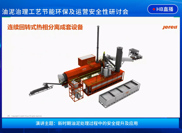本次研討會杰瑞環(huán)保工藝工程師張巖也帶來了《新時期油泥處理過程中的安全提升及應(yīng)用》的主題分享:杰瑞環(huán)保擁有連續(xù)回轉(zhuǎn)式熱相分離、連續(xù)螺旋式分析分離、調(diào)制分離、油罐機械清洗、廢棄物回注等多種核心技術(shù),以及物料預(yù)處理及均質(zhì)化等配套技術(shù),針對不同客戶需求、不同領(lǐng)域的含油廢棄物,以最合適的分類分質(zhì)方式,提供高標(biāo)準低成本、高效率的一體化的含油廢棄物及工業(yè)廢泥治理方案。