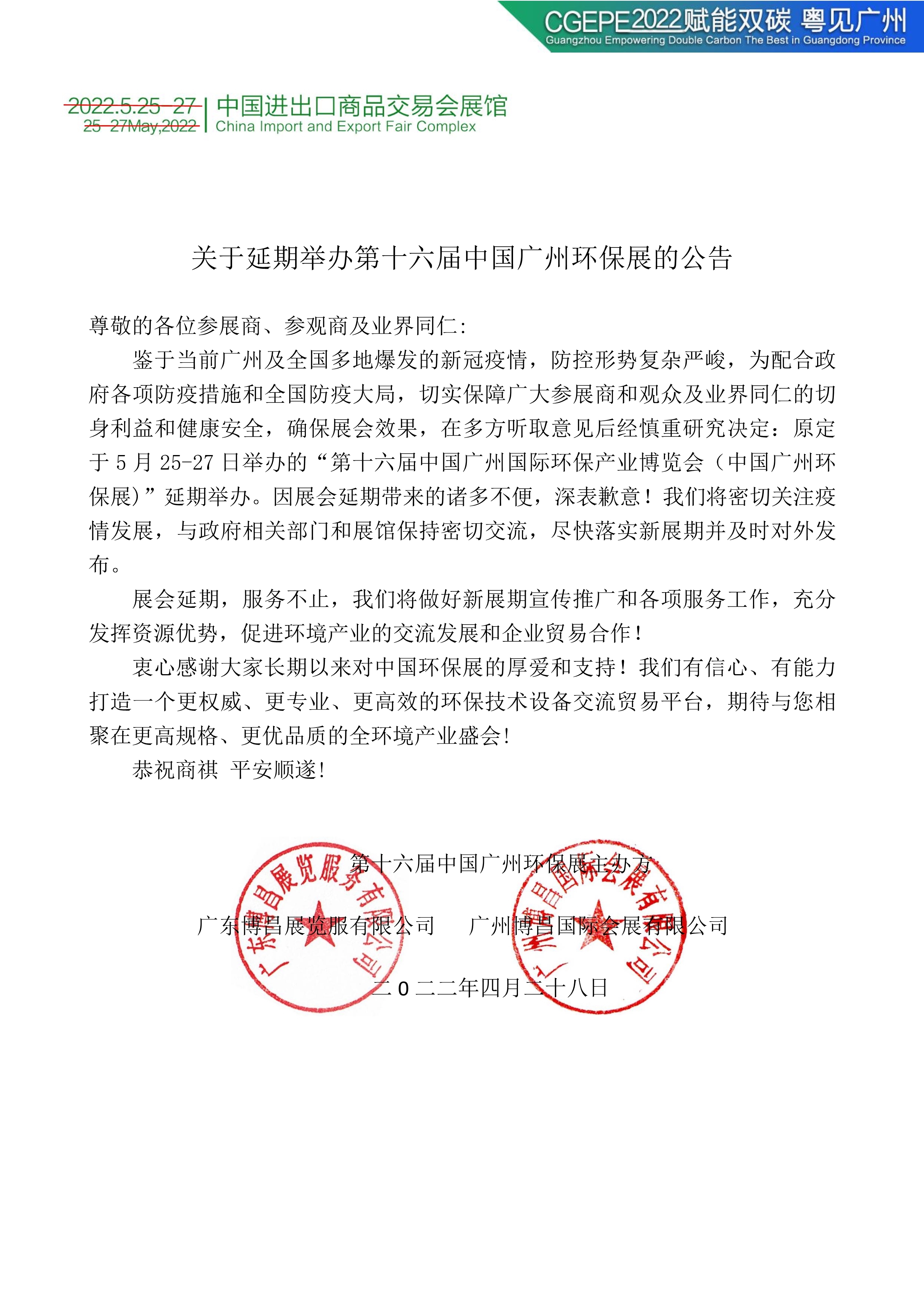 第十六屆中國廣州環(huán)保展延期后相關(guān)問題解答