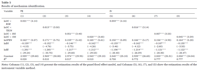 綠色信貸估計系數(shù)是正的,在1%的顯著性水平上是顯著的,這表明減少流向重污染企業(yè)的金融資源(即綠色信貸政策的強化)有助于減少污染。換句話說,在研究期間,中國的綠色信貸政策對改善環(huán)境質(zhì)量起到了全面的作用。